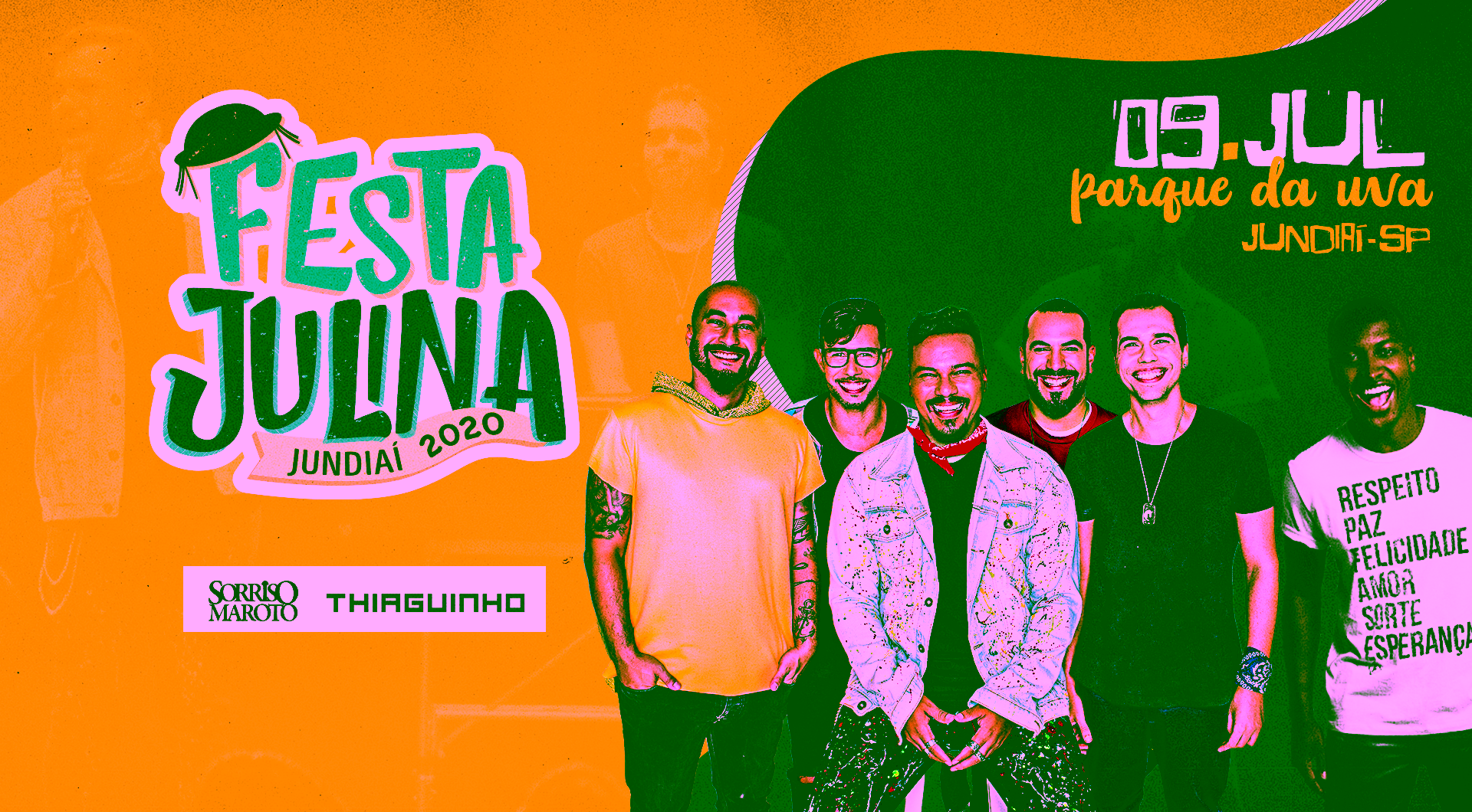 Mais duas grandes atrações da Festa Julina Jundiaí foram reveladas. Após o anúncio da dupla Jorge & Mateus, que se apresentam no dia 05 de julho, o evento acaba de divulgar shows do grupo Sorriso Maroto e do cantor Thiaguinho, ambos no dia 09 de julho.